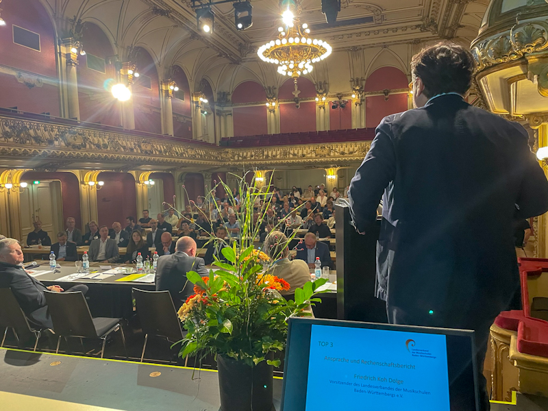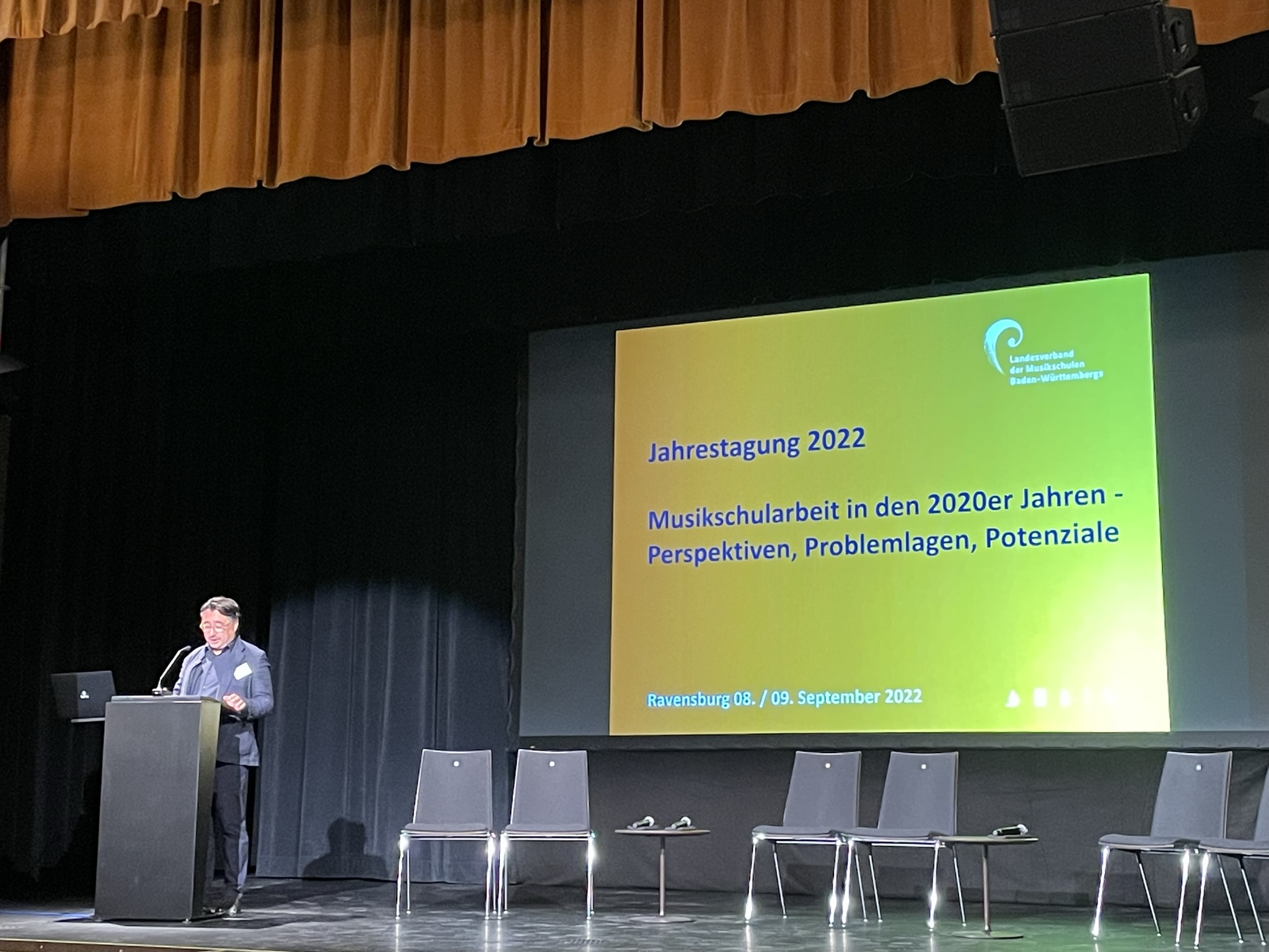 Unter dem Titel „Musikschularbeit in den 2020er Jahren – Perspektiven, Problemlagen, Potenziale“ fand am 8. September 2022 unsere diesjährige Jahrestagung in Ravensburg statt. Im Dialog mit den wichtigsten Partnern der Musikschulen auf Landesebene diskutierten rund 120 Leitungskräfte unserer Mitgliedsschulen über die zentralen Zukunftsthemen der musikalischen Bildung. Neben dem gravierenden Fachkräftemangel insbesondere auch in der Elementaren Musikpädagogik ist die Zukunft der Musikschularbeit vor dem Hintergrund des Rechtsanspruches auf eine Ganztagsbetreuung in der Primarstufe ab dem Schuljahr 2026/27 von besonderer Bedeutung.