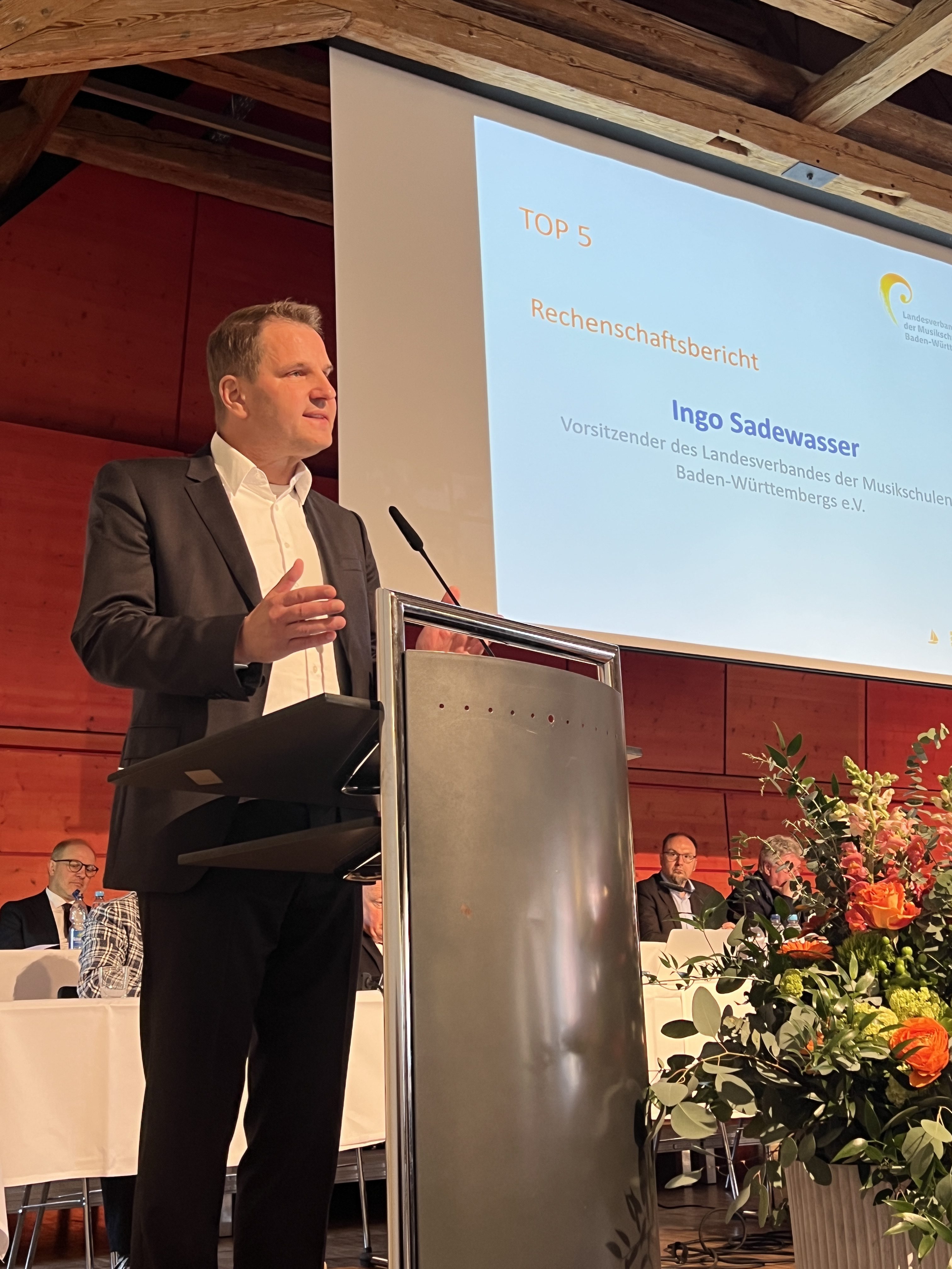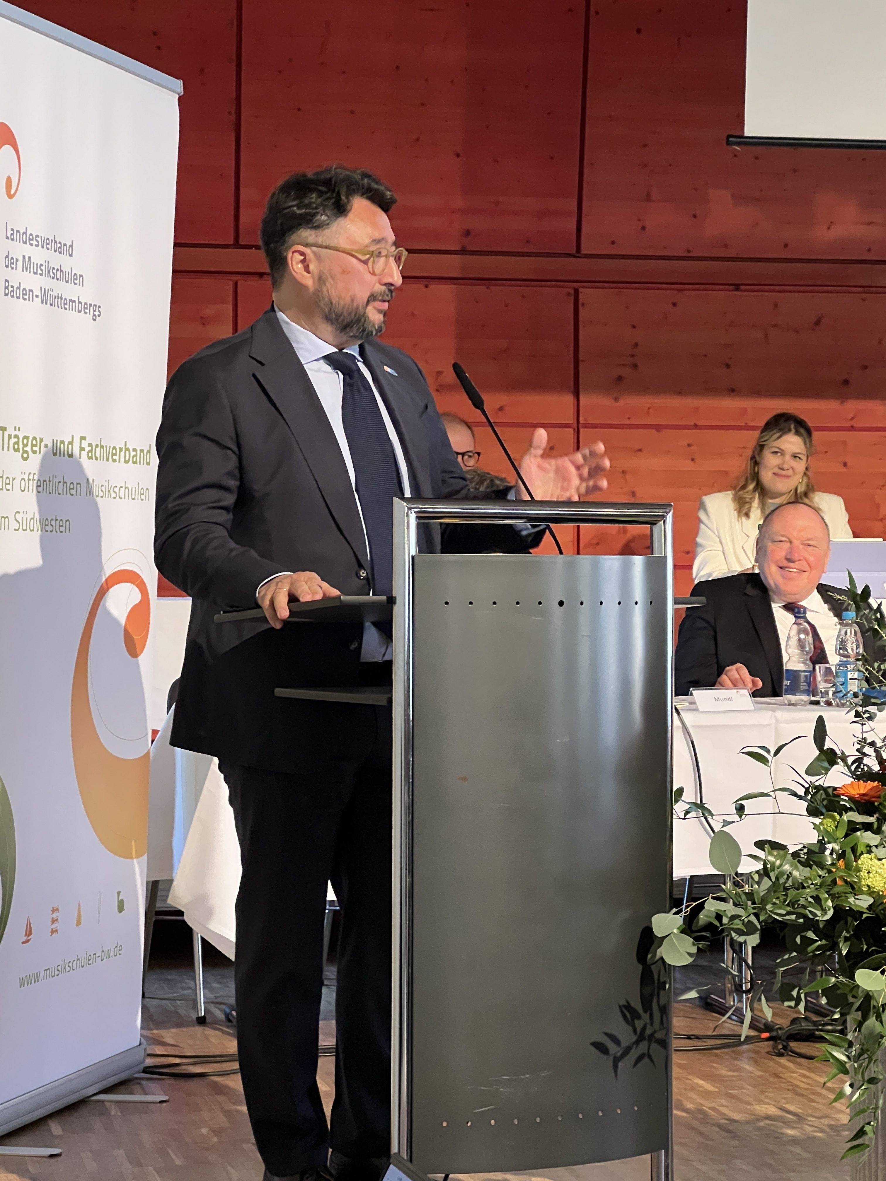Der Landrat des Ostalbkreises, Dr. Joachim Bläse, hob die gesellschaftliche Bedeutung der Musikschulen hervor:„Die Musikschulen geben jungen Menschen die Chance, im Ensemble aufzutreten, gemeinsam etwas zu tun.“ So werde Gemeinschaftssinn erlebbar. Zugleich verwies er auf die wichtige Rolle der Internationalen Musikschulakademie Schloss Kapfenburg als gemeinsame Einrichtung des Verbandes und der Region für die Arbeit der Musikschulen im Land.